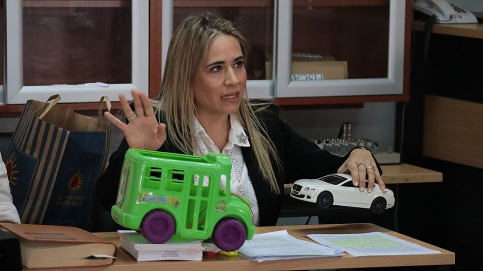 “La causa eficiente fue el factor humano, es decir, la falta de dominio del imputado. El vehículo embistente fue el Corolla y , como dijo el perito Duarte, la mínima fue 90. La velocidad y falta de dominio fueron las causales en este hecho. Por las cámaras se vé que Zielinski viene evadiendo autos y cruza de carril”, sostuvo la fiscal, quien utilizó dos autos de juguete para graficar la secuencia de impacto.